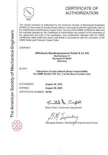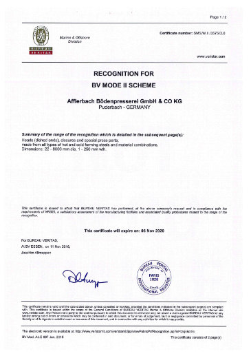 ABS, AIB, APAVE, Service des Mines, APRAGAZ, Association Vincotte, DB, ISPESL, POLISH & RUSSIAN MARITIME REGISTER OF SHIPPING, SGS-ControllCo, K