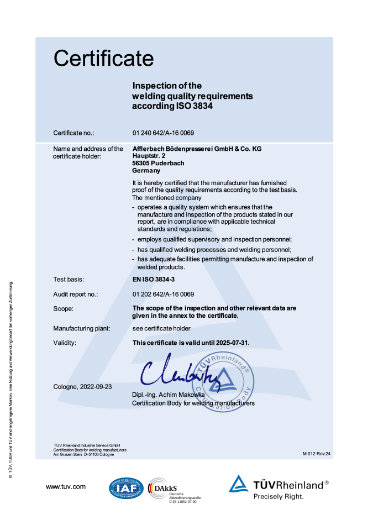 to TRB 100 (AD 2000-W0) / TRD 100, TRB 200 (AD 2000-HP0) / TRD 201, DIN EN 729-3 and PED 97/23/EC